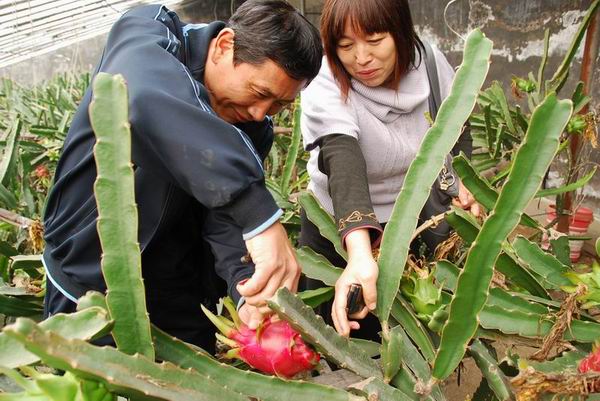 北京九妹火龙果采摘园,位于北京市怀柔区庙城镇赵各庄村东100米,园内有100栋温室大棚,其中2栋(63、64)大棚种植火龙果。我园自2003年从台湾引进火龙果至今,深受广大消费者的喜爱,都说它的花美、果亮、味甜。 北京九妹火龙果采摘园曾多次被北京电视台、中央电视台ccTv-7《每日农经》、ccTv-2《生财有道》等栏目播报。因本采摘园免费提供种植技术,吸引了许多种植爱好者,使火龙果在他乡开花结果,造福大众! |
